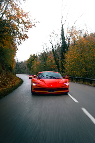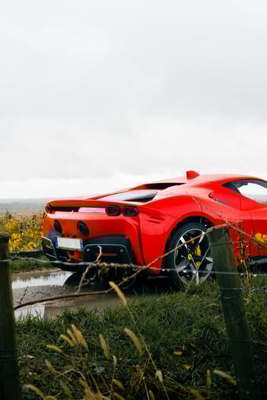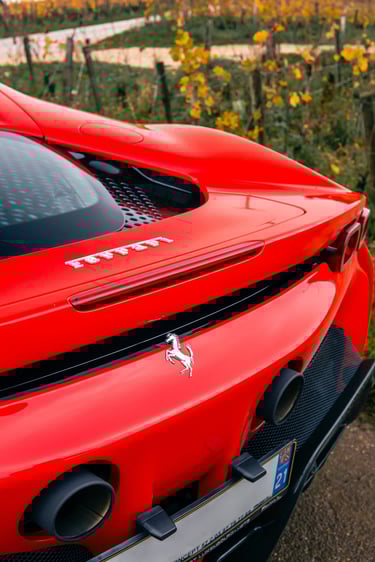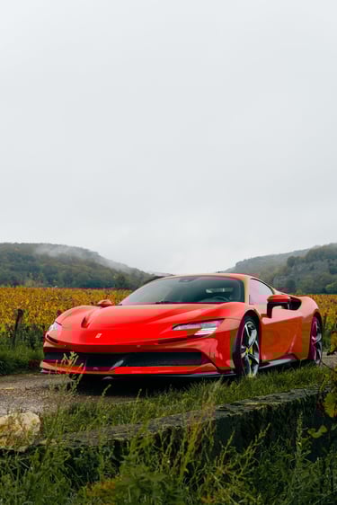 Shooting de cette magnifique Ferrari SF90 dans les vignes de la Route des Grands Crus